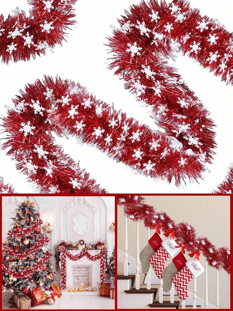 1000cm/500cm/200cm-Red Shiny Snowflake Metallic Aluminum Foil Tassel Wreath, Christmas Tree Garland DecorationChristmas Snowflake Tinsel Garlands Xmas Chunky Tinsel Decoration For Christmas Tree Decorations Party Indoor And Outdoor Decorations,Red Christmas Tinsel Garland, Christmas Tree Tinsel Thick Xmas Tree Tinsel Chunky Metallic Tinsel For Christmas Tree Decorations, Party, Home Decorations.