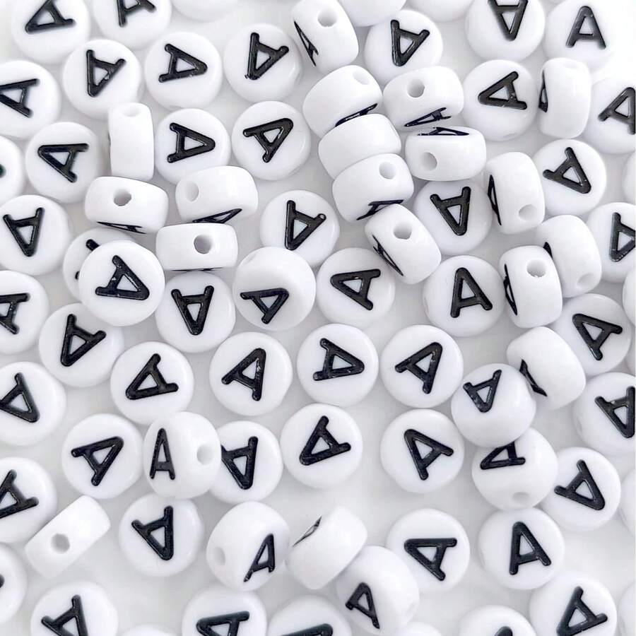 100pcs 4x7mm Round White Base Black Letter Beads A-Z 26 Letter Beads, Suitable For Bracelets, Necklaces, Handmade DIY Jewelry Making Accessories