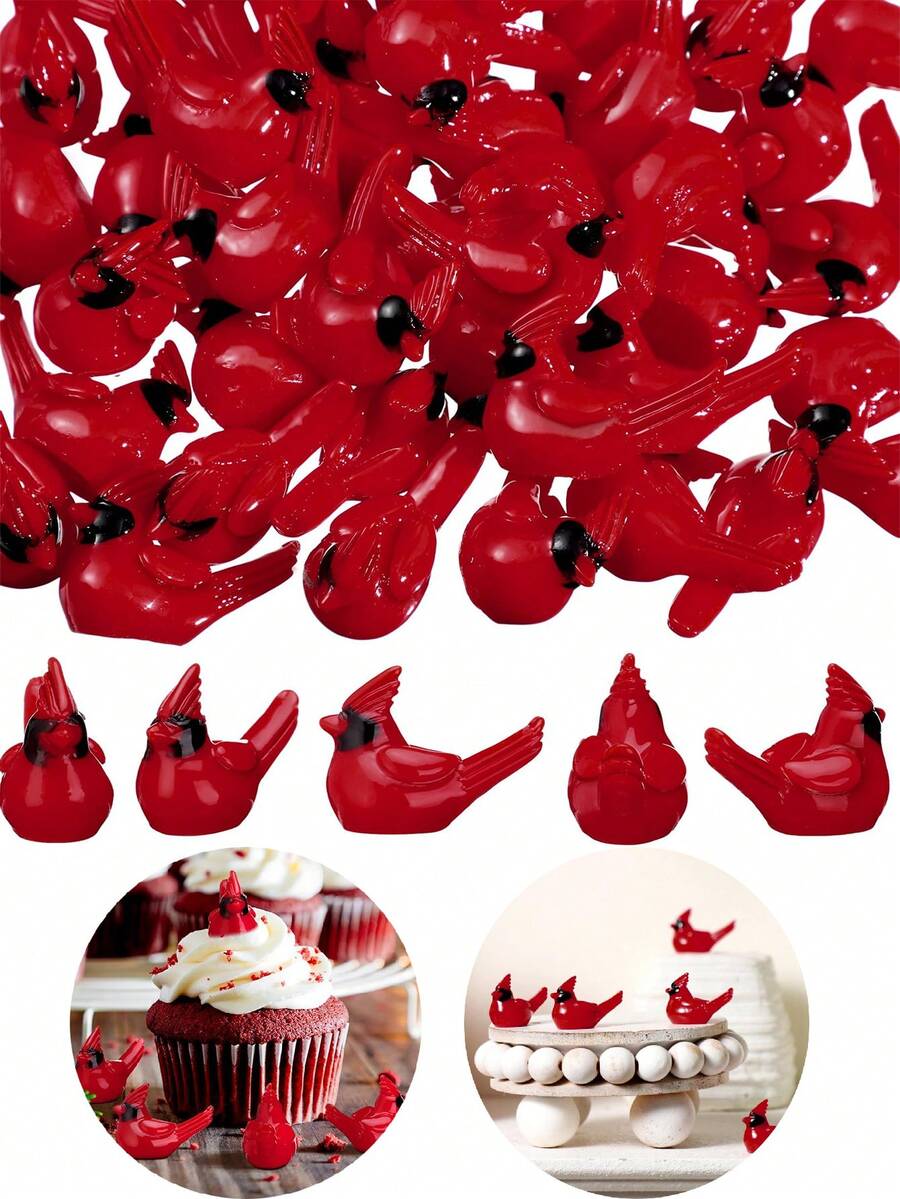 10pcs Mini Resin Red Cardinal Bird Figurines, Tiny Cardinal Ornaments For Christmas Gifts, Xmas Miniature Garden Crafts, Cake Toppers, Christmas Decorations