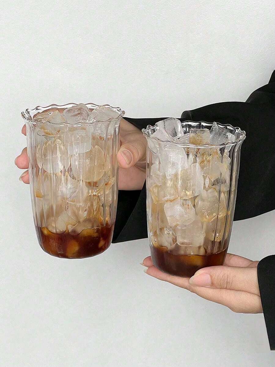 1PC 420ml 14.2oz Vertical Stripes Glass Cup, Flower Shaped Water Cup, Iced Coffee Cups, Drinking Cups, Transparent Glass Cup, Portable And Simple Style Water Cup, Reusable High-Quality Coffee & Juice Cup, Multi Functional Beverage Container, Perfect For Home, Office, Beach, All Kinds Of Parties, Suitable For Cold Drinks, Coffee, Juices, Whiskey, Milk, Iced Americano And Latte Drinks, Drinking Glass