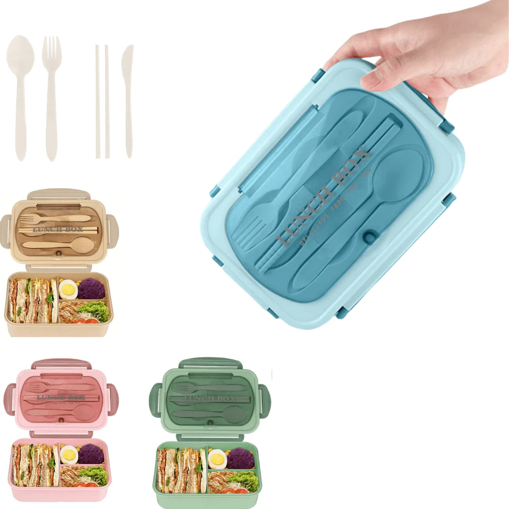 1Pc Portable 3-Compartment Lunch Box With Cutlery Set-Includes Fork, Knife, Spoon, And Chopsticks ,, Leak-Proof, Ideal For Office, School, Family Picnic And Travel Compact Design For Everyday Use,Stylish Food Storage Box