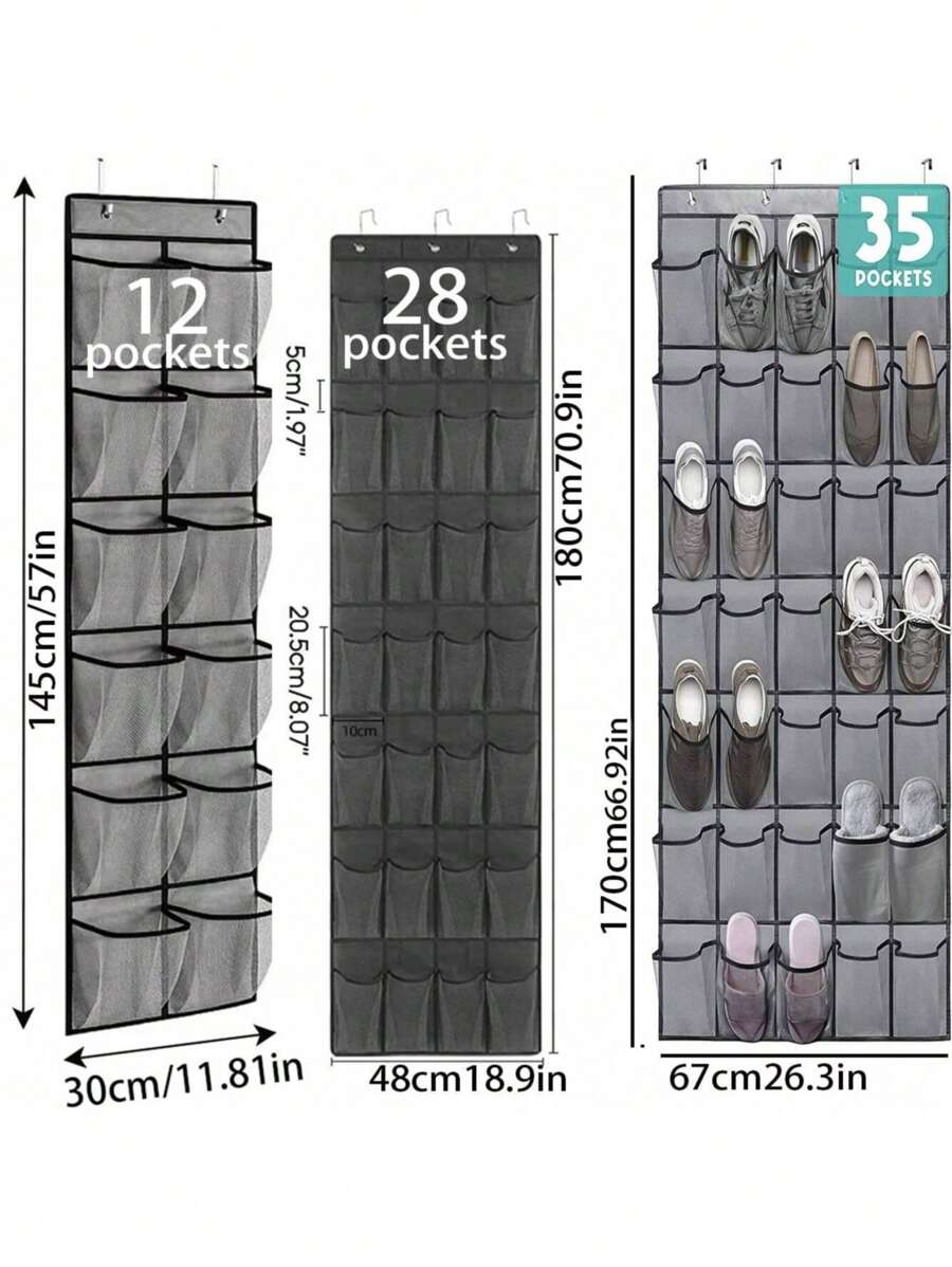 1pc /12//28/35/14/40 Pockets Available Mesh Bag Shoe Storage Rack, Closet Door Hanging Organizer, Large Pockets Hanging Shoe Rack For Closet Mesh Back Of Door Shoe Storage Door Hanger, Over The Door Shoe Organizer Closet Hanging Shoe Holder Hanger, For Space Saving – Breathable Over-The-Door Shoe Organizer For Sneakers, Heels, Slippers & Kids Shoes