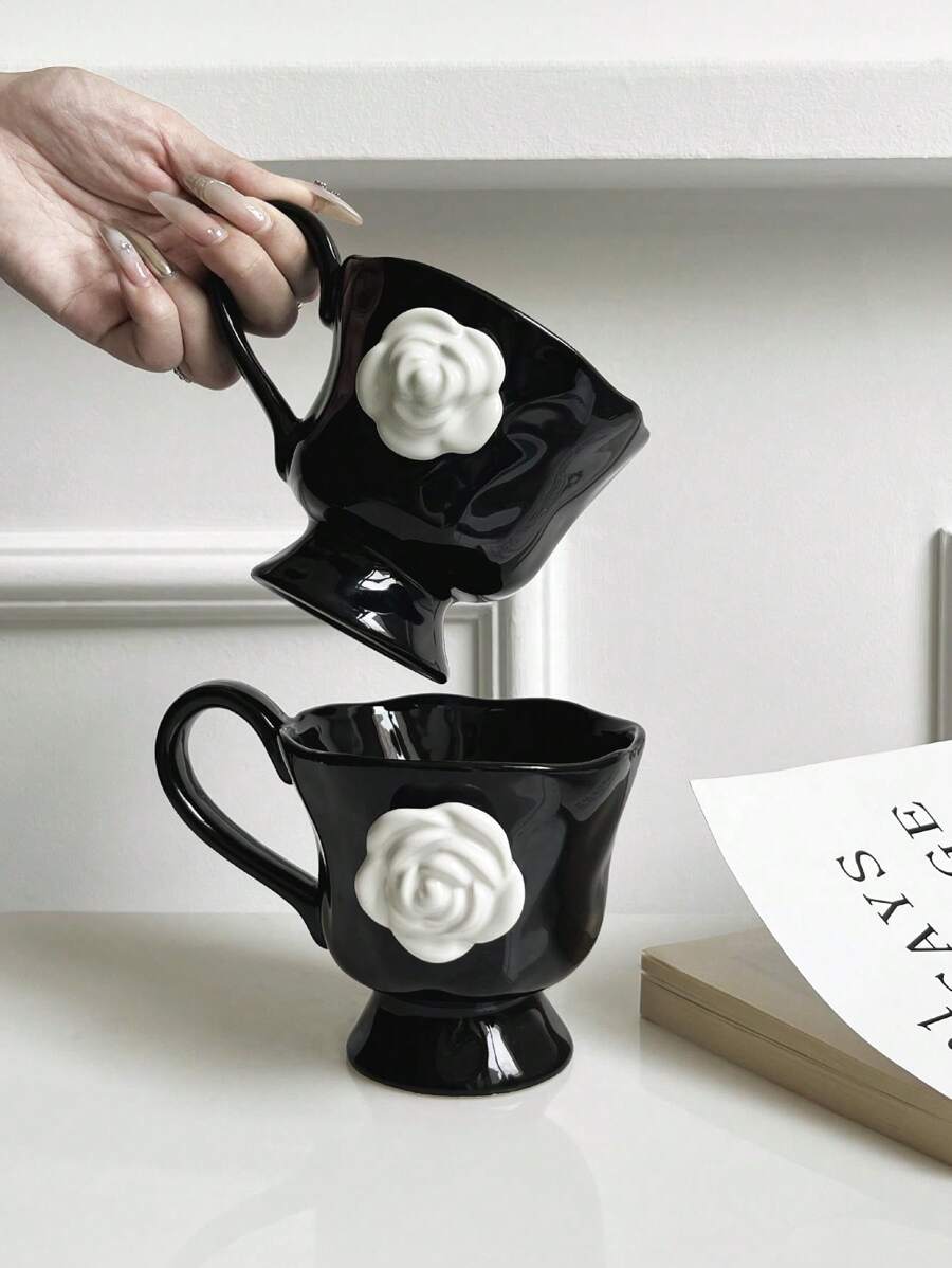 1pc 350ml High-End Camellia Ceramic Mug, Exquisite Design Tea Cup For Afternoon Tea Or Coffee, Gift Or Souvenir Back To School
