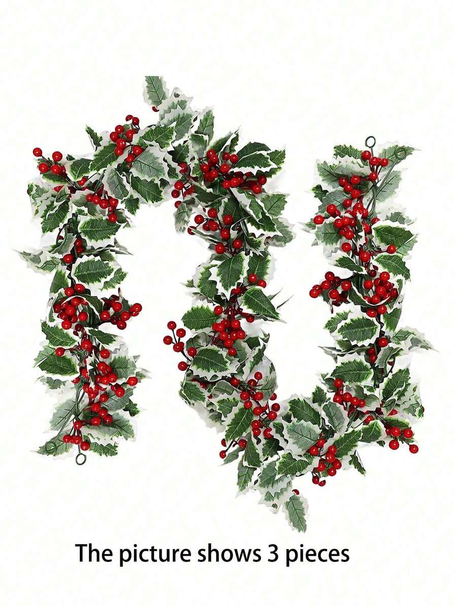 1/2pcs 74.8inch Artificial Red Fruit Vine With Simulated Green Leaves, Wreath-Style Artificial Vine, Bright Colors, For Home Decoration, Outdoor Courtyard Decoration, Porch Balcony Decoration, Fireplace Decoration, Christmas Tree Decoration, Wreath Making, Party Decoration, Bedroom Living Room Decoration, Wall Decoration, Office Decoration, Christmas Decoration, Birthday Gift