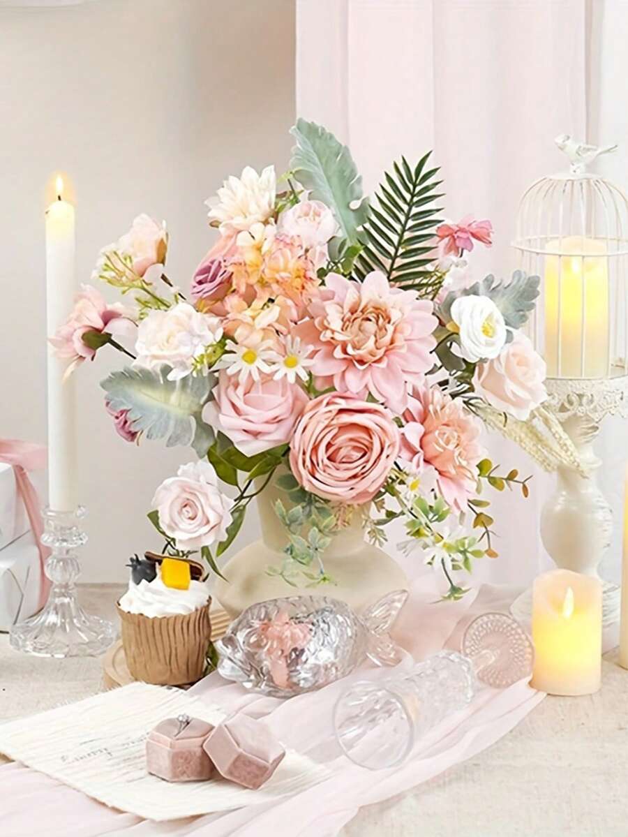 1pc Artificial Flower Box Set, Includes Fake Flowers, Suitable For DIY Decor, Wedding Bouquets, Luxury Boutiques, Home Decor (Pink), Valentine's Day & Spring