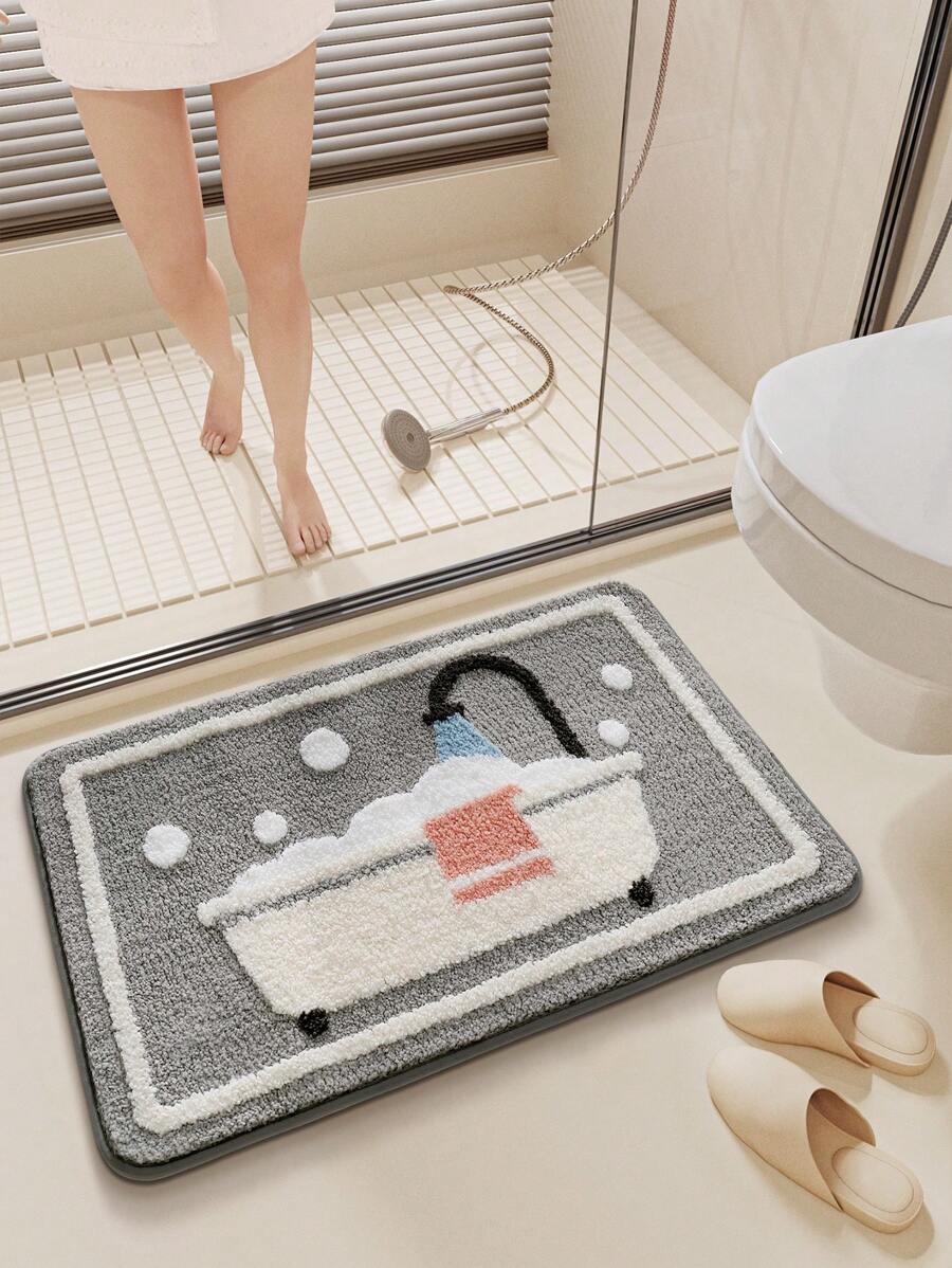 DAJIANG 1pc Cartoon Bath Style Cute Bathroom Mat, Soft Absorbent Classroom Rug And Carpet, Non-Slip Backing And Machine Washable, For Living Room, Vanity, Bathtub, Shower, Sink - Thick & Plush Entryway Decor Bathroom Kitchen Decor