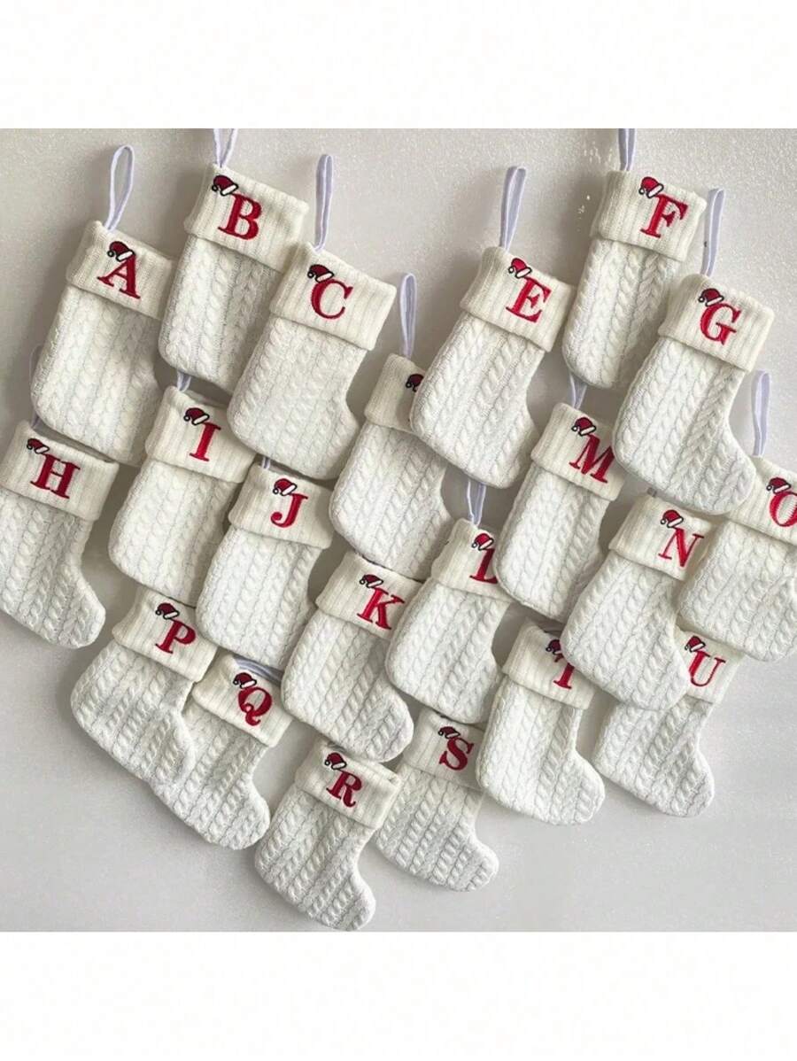 1pc Christmas Decorations Christmas Sock Hangings Red/White-Green Wool Knitted Sock Hangings Christmas Socks Letter Socks Snowflake Socks Christmas Tree Garland Hangings, Christmas Tree Decor, Christmas Decor, Christmas Tree Ornament Decor,Christmas
