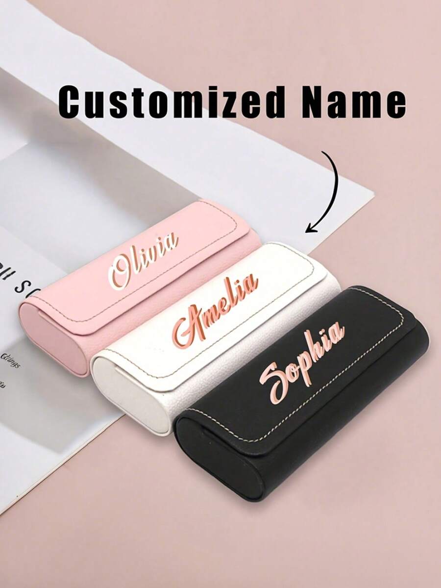 1pc Customized Glasses Case - Personalized Name Engraved, Pu Material Glasses Storage Box, Elegant Cursive Script, 3 Colors (Pink/White/Black), Durable Scratch-Resistant Material, Pressure-Proof Portable Design For Oversized Frames - Unisex Gift For Women & Men, Sports, Daily Use