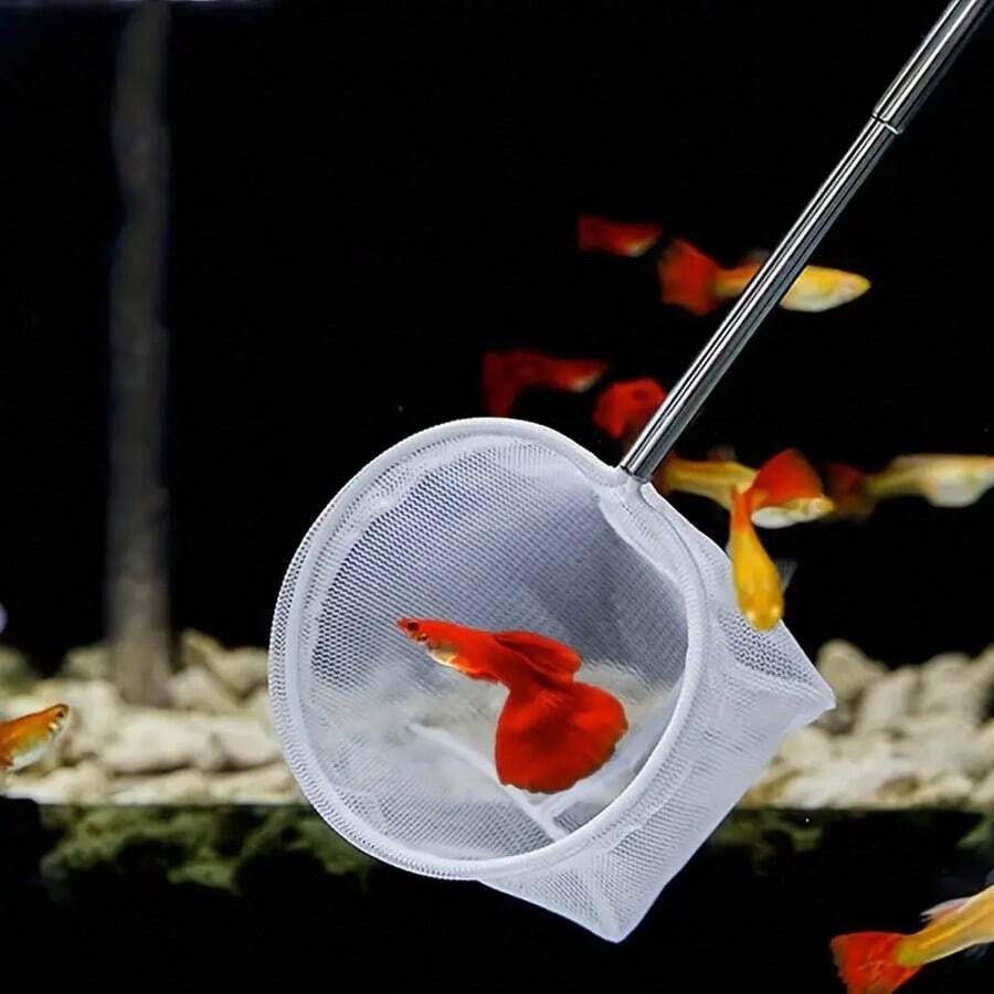 1pc Durable Stainless Steel Aquarium Fish Net With Telescopic Handle - Fine Mesh For Easy Catching And Handling