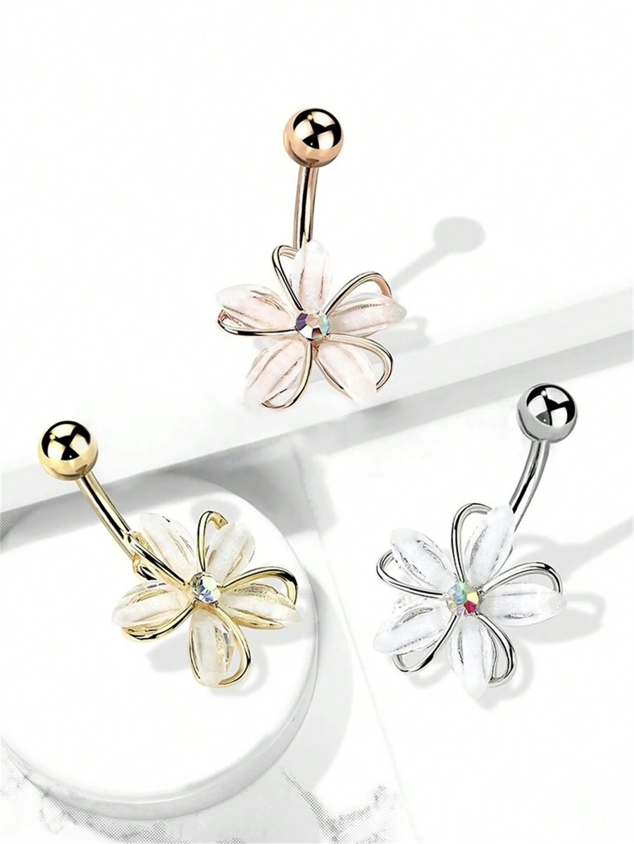 1pc Exquisite & Sparkling Crystal Flower Belly Button Ring, 316L Surgical Steel Piercing Jewelry With Shiny Petal Decoration. Perfect For Dating, Daily Wear Or Gifting. Valentines