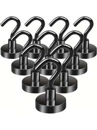 10Pcs Neodymium Magnetic Hooks, 16mm Strong Magnet Hooks, Super Powerful Magnetic Hooks With Holders, Suitable For Kitchen, Storage Cabinet, Office, Refrigerator (Black), Easy Installation, Suitable For Ceiling, Painted Metal Surface, No Need Drilling, Applicable For Iron Door, Refrigerator, Kitchen, Office, Camping #4 Bestseller