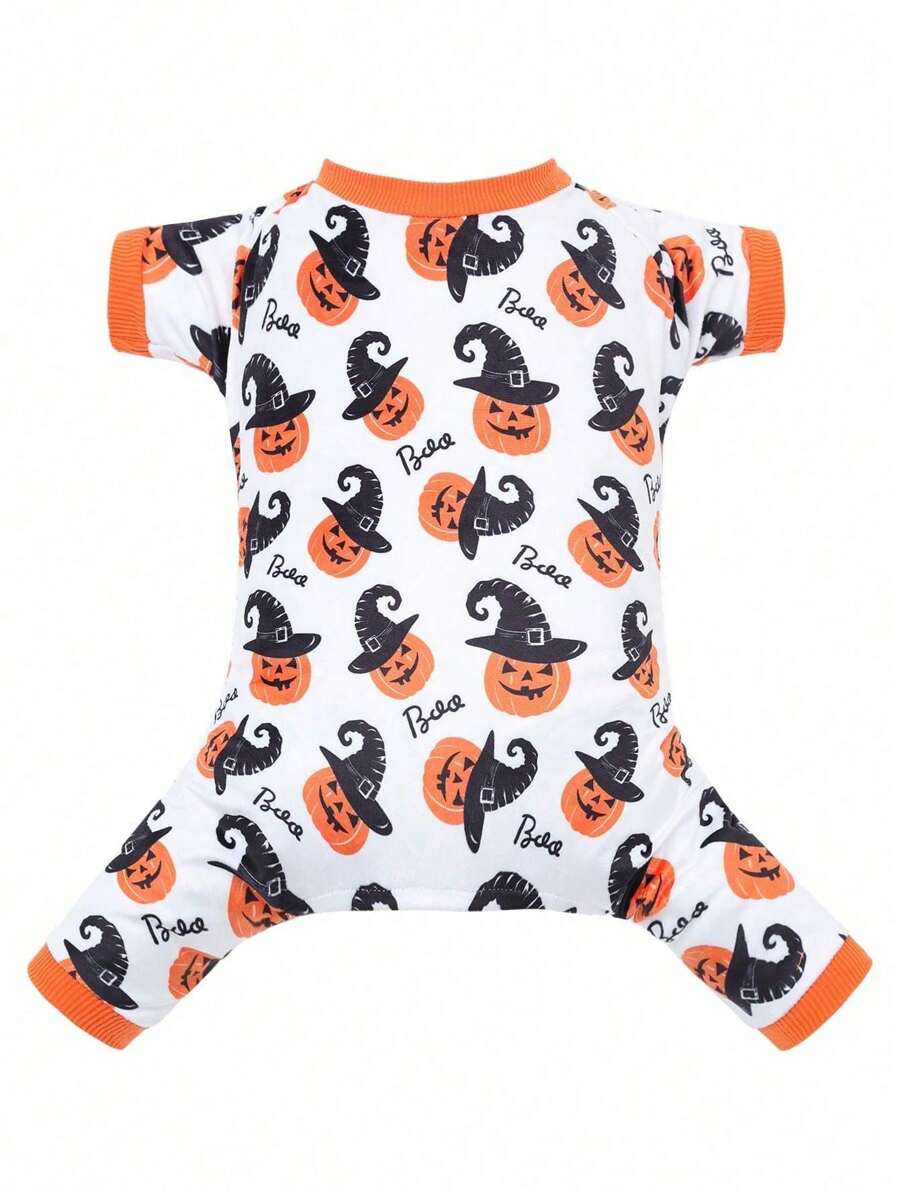 1pc Halloween Pumpkin Witch Hat Print Pet Four-Legged Clothes, Cute For Dogs And Cats, Holiday Party Cute Pet Dress-Up Autumn And Winter Warm Clothing