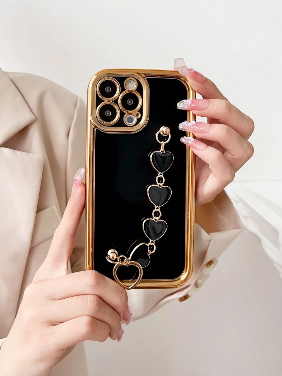 1pc Monochrome 3d Plated Frame & Heart Chain Phone Case Compatible With Iphones