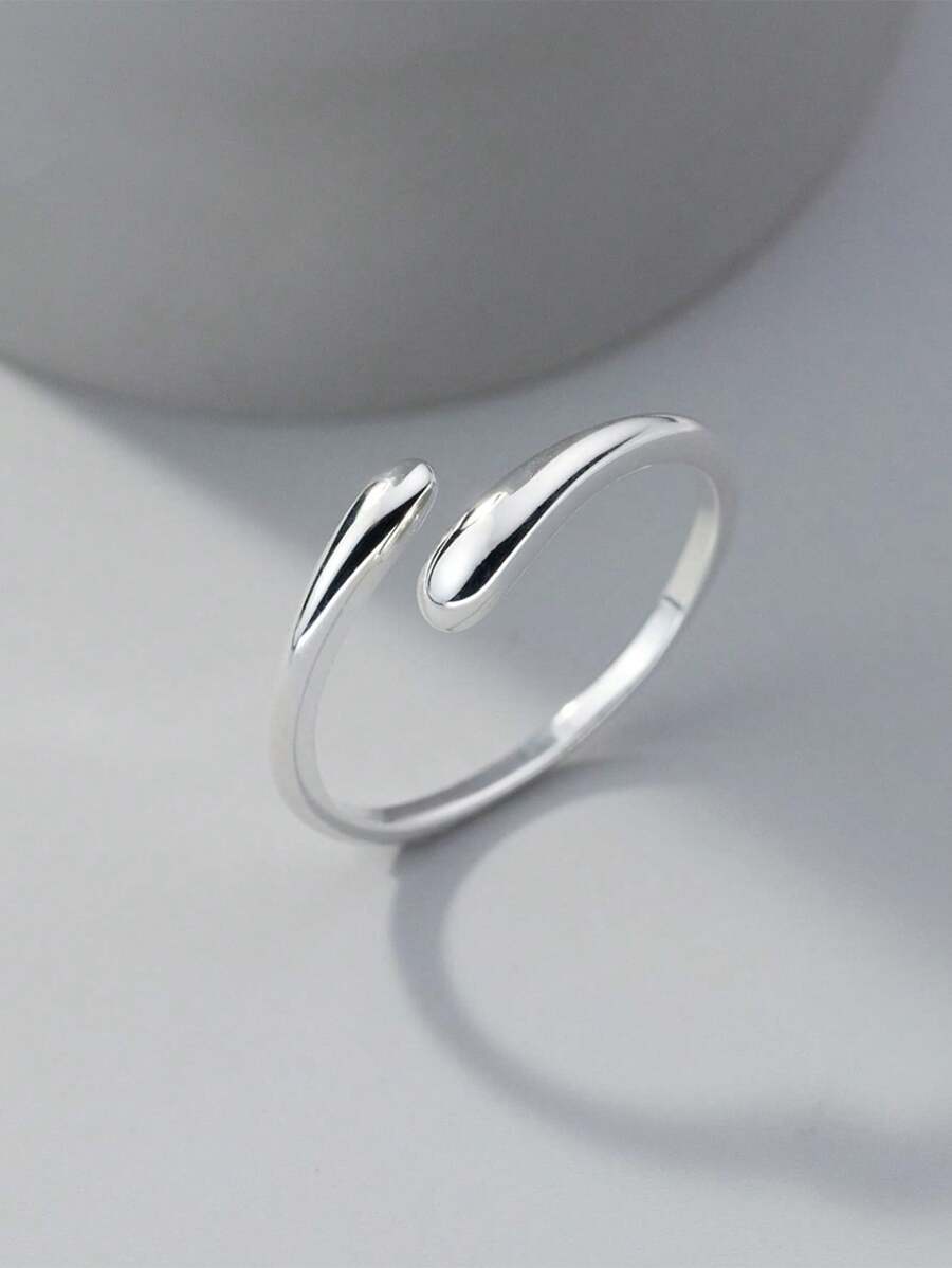 1pc S925 Sterling Silver Waterdrop Design Open Ring, Unisex Hand Accessory.