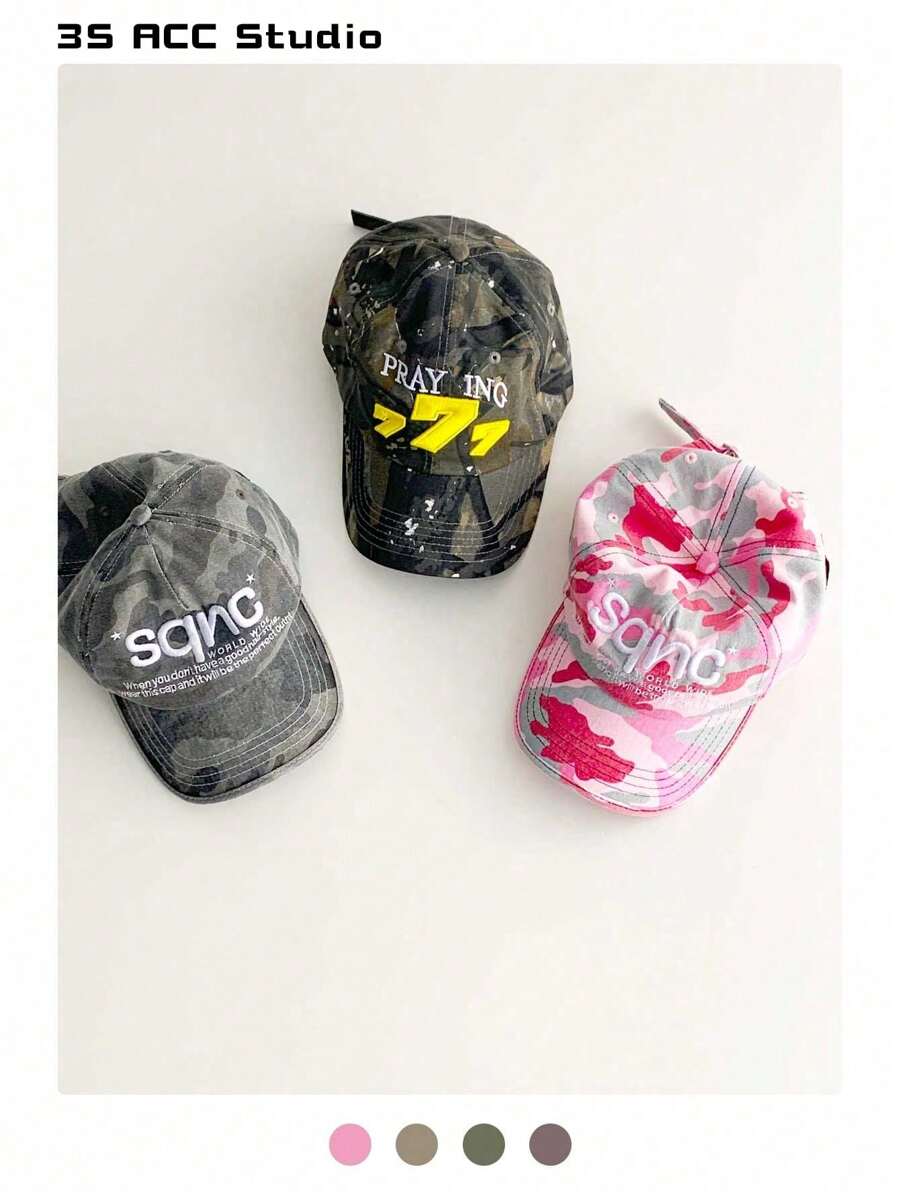 Ripped Camouflage Embroidered Baseball Cap*Pink