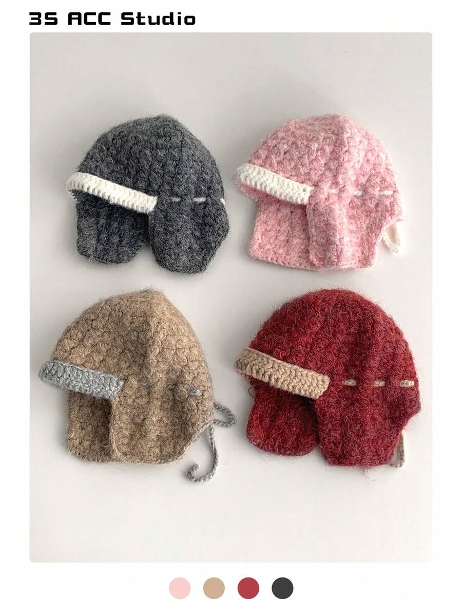 1pc Vintage Mixed Color Knitted Earflap Hat, Warm & Versatile For Women In Autumn/Winter