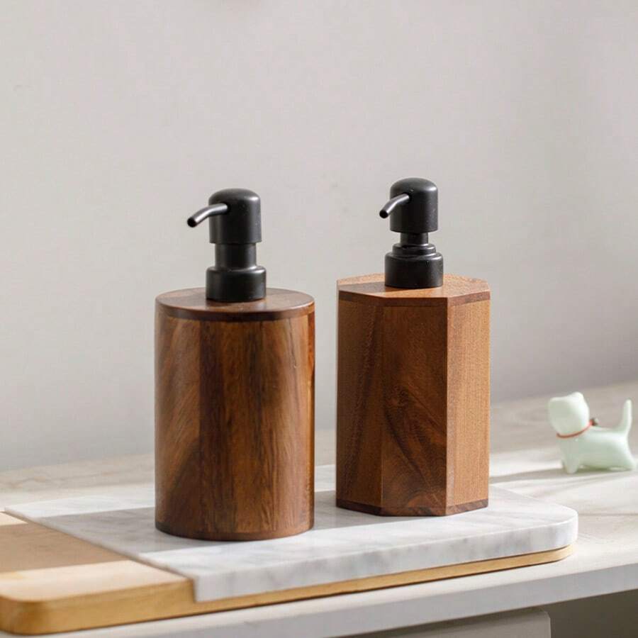 1pc Walnut Wood Pump Bottle, Luxury Hotel Shower Gel, Shampoo, Lotion, Hand Wash Dispenser