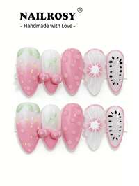 10-Piece Set, Cadet Blue, Short Ladder Type, Wearable Nail Art, Handmade, Elegant And Generous Design, High-End French Style, Gel Polishing, Flash, Cat'S Eye Effect, Metallic Luster, Full Coverage Of Fake Nail Tips Press On Nails Nail Supplies Nails #2 Bestseller