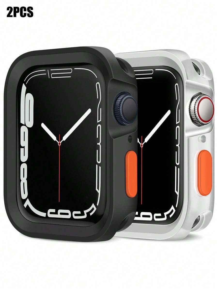 2pcs/Set Women Men Fashionable Casual Cute Soft TPU Hollow Out Protector Cover Comfortable Matte Anti-Fall Watch Case, Compatible With Apple Watch Case 40/41/42/44/45/46/49mm, For Apple Watch Series Ultra/SE/11/10/9/8/7/6/5/4, Clear+Black
