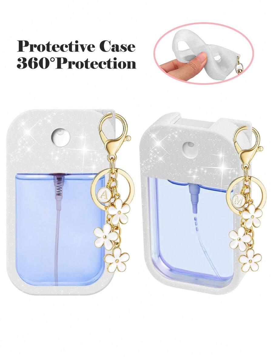 2pcs Touchland 1oz (30ml) Hand Sanitizer Spray Bottle Protective Case, 26 Flower & Letter Spray Bottle Marker, Silicone Anti-Drop Anti-Collision Protective Case With Keychain Design, Easy To Carry For Travel, Can Be Hung On Bags, Keys Or Children's Backpacks, Wear-Resistant, Waterproof, Reusable Protective Case For Touchland Hand Sanitizer Spray, Travel, Outdoor, Gifts, Halloween Gifts, Christmas Gifts