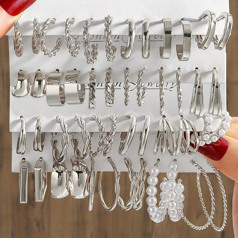 50/48/12pcs Fashion Faux Pearl Earring Set For Women, Classic Square And C-Shaped Jewelry, Suitable For Daily, Dating, Party, Mother's Day Gift