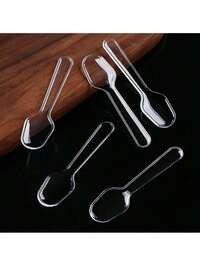500pcs (Reusable) Transparent Dessert Spoons, Cake Spoons, Pudding Spoons, Ice Cream Spoons Suitable For Home Use, Party Supplies, Cutlery Sets, Kitchen, Christmas Gifts 100/50/30 Transparent Dessert Spoons, Cake Spoons, Pudding Spoons, Ice Cream Spoons Back To School