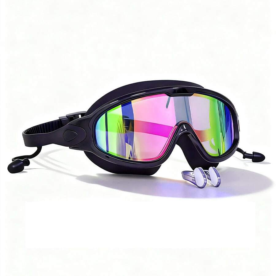 Adult Large Frame Waterproof Anti-Fog Swimming Goggles With Built-In Earplug, Nose Clip, Clear Vision Swimming Eyewear Accessories, Beach Essentials, Beach Accessories, Pool Float