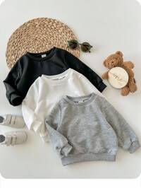 PipplinSHEIN 3pcs/Set Thickened Fleece Baby Boy Sweatshirts (Without Pants), Solid Color Dinosaur Print Crew Neck Long Sleeve Sweatshirts, Comfortable Casual Daily Wear, Suitable For Indoor, Outdoor, Sports, Party, Photography, Festival, Streetwear, Christmas, New Year, Autumn/Winter