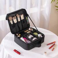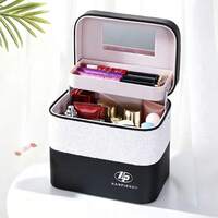 Large Capacity Makeup Bag With Mirror, Portable 3-Tier Cosmetic Organizer Case With Expandable Trays, Waterproof PU Leather Travel Toiletry Bag For Women, Dustproof Makeup Storage Box For Cosmetics, Skincare, Lipsticks, Brushes, Jewelry, Ideal For Travel, Home, Dorm, Birthday Gift For Her,Quilted Makeup Case, Durable Zippered Beauty Organizer For Daily Use & VacatioNEW