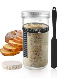 6pcs Sourdough Fermentation Jar Set, Includes Dough Scraper, Fermentation Jar, Sourdough Baking Supplies, Glass Fermentation Jars, Baking Tools Set, Bread Proofing Basket, Sourdough Fermentation Jar With Date Tracker And Feeding Lid, 24oz Sourdough Fermentation Jar, Thermometer, Cloth And Metal Lids, Easy To Clean, For Fermenting Dough And Yogurt, Also For Storing Beans, Coffee And Flour, Christmas Gift, Kitchen Gadgets