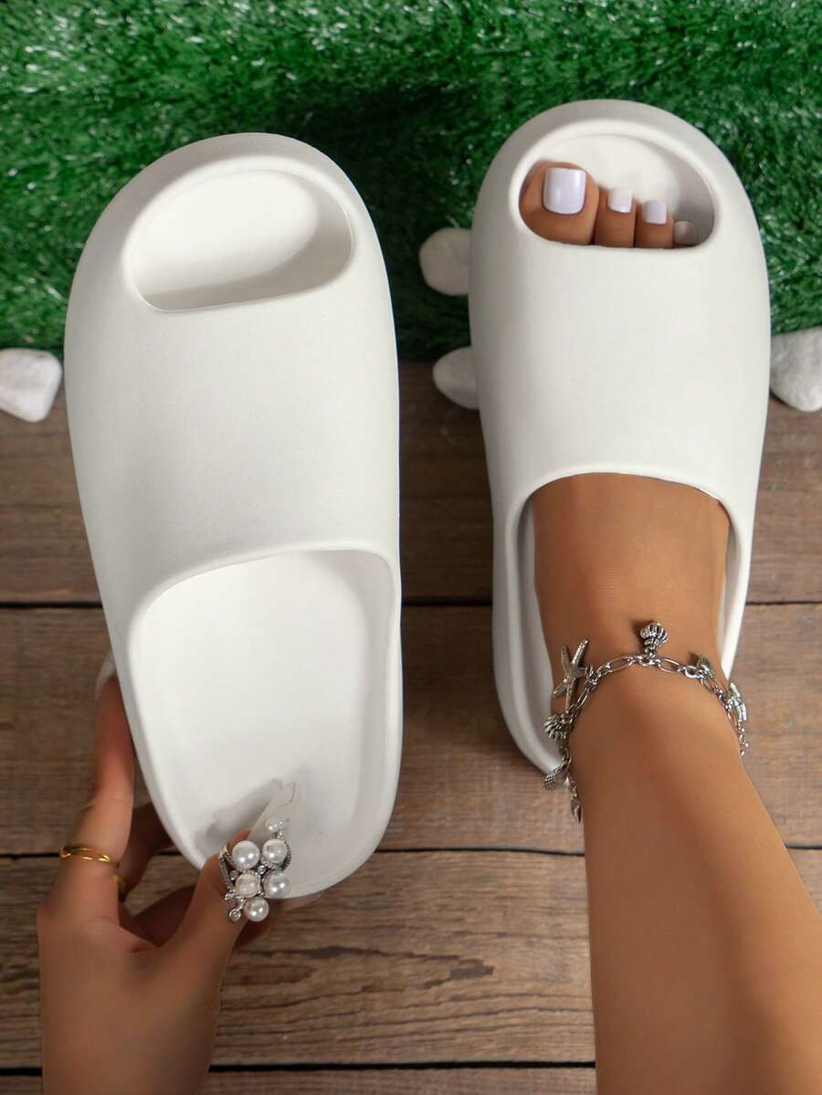 Girl's Fashion Cloud Design Slippers, Non-Slip Quick-Dry Soft Lightweight Shower Shoes, Teens' Versatile Thick-Sole Open-Toe Indoor/Outdoor Slides