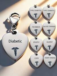 Medical Alert Keychain, Stainless Steel Heart-Shaped, Reminder For Diabetes, Allergy, Blood Thinners, Bag/Car Decor, Daily Wear Gift, Suitable For Men, Women, Teens, Gothic/Y2K Style