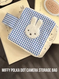 FLASHOMEMiffy Instant Camera Storage Pouch, Blue-White Checkered, Adorable Vivid Miffy Pattern, Off-White Base With Black Polka Dots Edges White Handle With Metal Zipper, Soft Plush & Fabric Material, Portable Design Fits Instant Camera, Perfect For Daily Use, Travel, Instant Photo Storage, Commute, Ideal For Miffy Fans, Cartoon Lovers, Young Women, Instant Camera Users, Lovely Gift For Friend/Lover #2 Bestseller