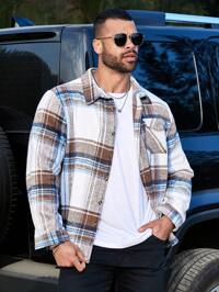 EASEVOPlus Size Men's Corduroy Jacket Shirt, Fashionable Corduroy Fabric Men's Casual Shirt Jacket, Lapel Collar, Button Front, Long Sleeve, Dual Pockets Design, Suitable For Daily Casual, Fashion, Minimalist, Commuting, Streetwear Style, Spring And Autumn, Great Gift For Men!
