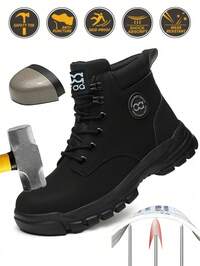 Men's Safety Shoes, Breathable Steel Toe Shoes, Lightweight Anti-Puncture EVA Sole Work Boots, Anti-Pressure Black Durable Work Training Shoes, Protective Shoes Suitable For Construction Sites, Warehouses, Gardening, Factories, Outdoor Work, Etc. Women's Sports Shoes, Anti-Crush, Hiking, Anti-Slip Travel, Steel Toe Work Boots, High-Top Construction Site And Daily Wear, Work Boots, Forging Workshop, Safety Shoes