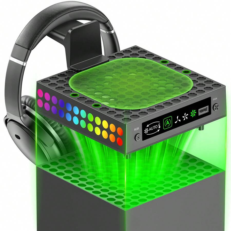 Multifunction Cooling Fan With Heatsink, Dust Cover, Display, RGB Light, Temperature Control For Series X Console Accessories - Includes Headphone Stand
