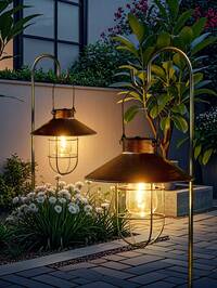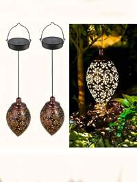 1/2pcs Solar Powered Hanging Lights, Outdoor Lighting, Solar Powered, No Wiring, No Electricity Cost, Automatically Lighting From Dusk To Dawn, Solar Powered Ceiling Lights, Suitable For Barn, Yard, Gazebo, Chicken Coop, Tent Solar Powered LED Copper Wire Starry Lights, Waterproof Outdoor Hanging Lights, Fake Candle Lights, Lanterns, Garden Lights, For Villa, Decor, Retro, Atmosphere Lights, Balcony, Atmosphere Night Light