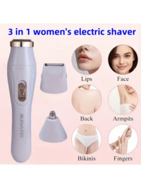 3-In-1 Women's Electric Shaver - Painless Facial, Nose, Leg And Underarm Hair Removal | Portable USB Rechargeable Bikini Trimmer With Storage Case, Pubic Hair Shaver, Painless Epilator, Bikini Area Shaver, Women's Pubic Hair Trimmer, Facial Epilation, Underarm Shaver, Grooming Tool, Compact Design, Durable Construction, Smooth Shaving, Personal Care, Beauty Essential #3 Bestseller