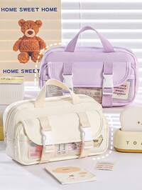 Large-Capacity Pencil Case - Transparent Multi-Layer Design, Portable Desktop Storage Box, Soft Fabric, Multiple Compartments, Very Suitable For Office Use, Zipper. Does Not Include Accessories.,Back To School,School Supplies,Pencil Pouch,School Bag,Stationery #7 Bestseller