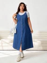 in Button Plus Size Denim Dresses