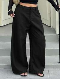 SHEIN PETITE CURVESHEIN PETITE CURVE Plus Size Solid Color Button Casual Wide Leg Pants,Teacher In Fall/Winter, Spring, Weddings & Events,Graduation Ceremony, Casual, Formal Wear, Black Pants,Daily Life, Commuting, Graduation, Studying, Teachers, Meetings, Office #5 Bestseller
