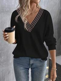 ResylaResyla Plus Size Women's Casual Pullover Sweatshirt, Rainbow Striped Print, Suitable For Autumn, Back To School, Teacher's Day, Daily Wear, Sports & Leisure, Holiday, Photography Street Snap, Must-Have, High Attention-Grabbing, Women's Crew Neck Sweatshirt
