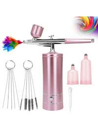 Portable Wireless Spray Gun Kit, 1000mAh Rechargeable Battery For Long-Lasting Use, Home High-Pressure Aeration Device, Moisturizing Aeration Device, Suitable For Model Making, Nail Art, Automotive Painting, Beauty Spraying Tools, DIY Craft Gifts. Includes Detachable Extension Hose, 0.3mm Dual-Action Spray Gun, 3 Liquid Bottles, Cleaning Brush Set, USB Power Cord, Double-Function Spray Gun With Air Compressor, 0.3mm Micro Sprayer Kit