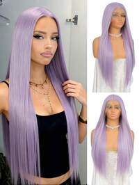 13x4 Kanekalon Futura Synthetic Lace Front Wig, Honey Golden Brown, 18 Inch Medium Length Wavy Bangs, No Glue Needed, Kanekalon Material, Durable Synthetic Wig, Middle Part, 150% Density, Ready To Wear, Suitable For Daily, Party, Holiday, Beginner Friendly, Transparent Lace Wig