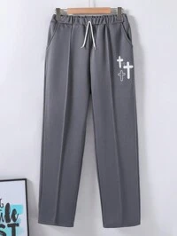 SHEIN Casual Loose Sweatpants For Teen Boys, Gray, Elastic Waistband, Retro Style, Suitable For Autumn, Winter, School, Home, Daily Wear, Sports, Birthday Party, Outings, All-Match, Minimalist, Valentine's Day