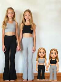 MODELY Kids2pcs/Set Teen Girls Leggings, Casual Elegant 2 In 1 Suit, Essential Spring/Autumn Item, Slim Fit Comfortable Mid-Waist, Suitable For Casual, Sports, Spring/Summer, Vacation, School, Commute, Summer Outing
