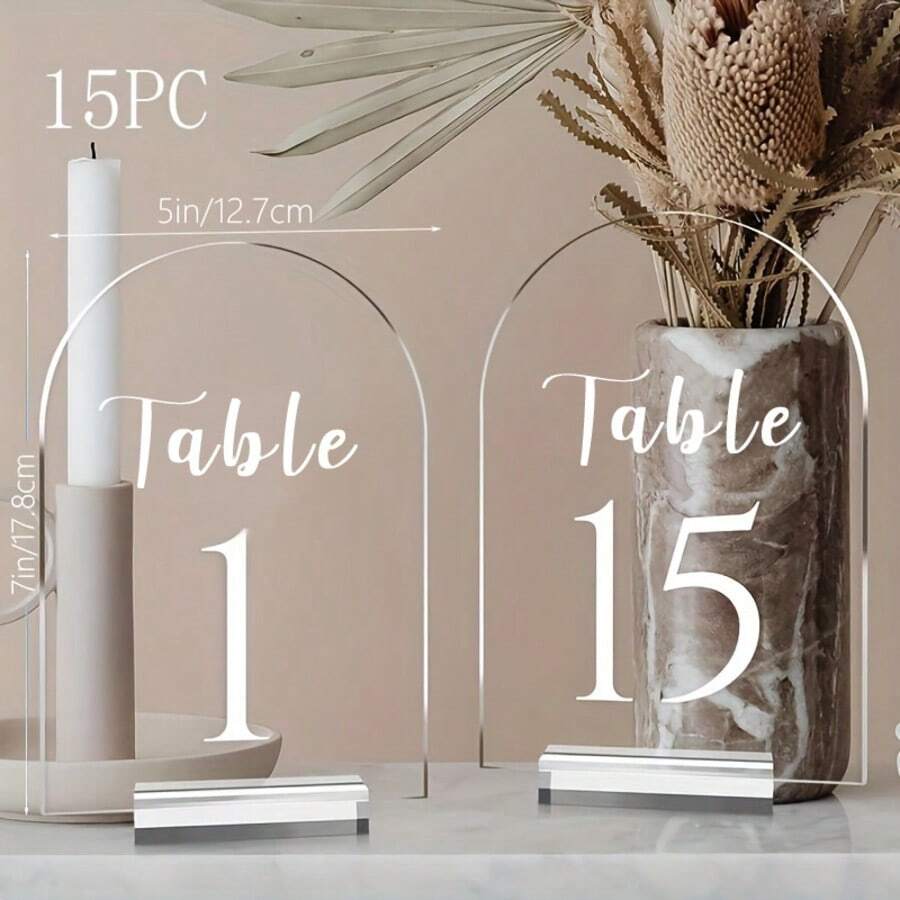 Transparent Acrylic Arch Shaped Table Numbers For Wedding, 12.7 X 17.78 Cm Arch Acrylic Table Number 1-10, With Acrylic Stand, Clear Acrylic Arch Shaped Table Sign, With Base, Reception, Party, Event Decor Summer Birthday Gifts Beach Back To School School Supplies Room Decor