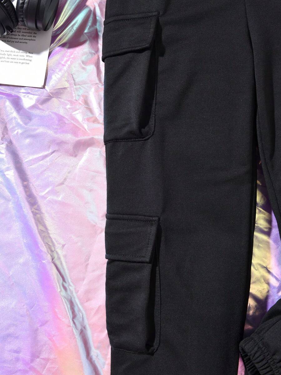 Tween Girl Flap Pocket Side Drawstring Waist Cargo Sweatpants