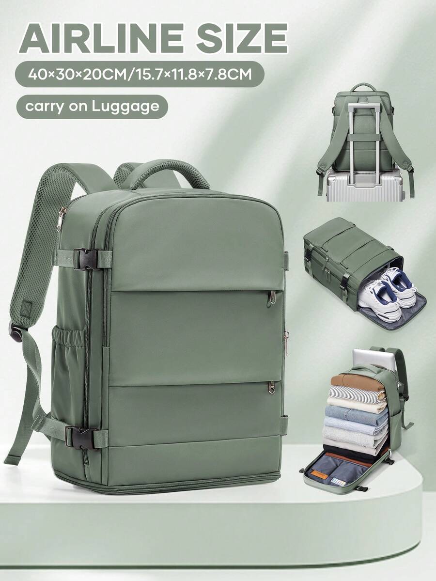 Unisex Large Travel Backpack, Business Laptop Backpack, Carry-On Size 42x20x32cm, Meets Airline Standards, Water-Resistant, Multi-Function Separate Shoe Compartment, Wet & Dry Separation, Suitable For Students, Commuting, Laptop, Vacation Travel