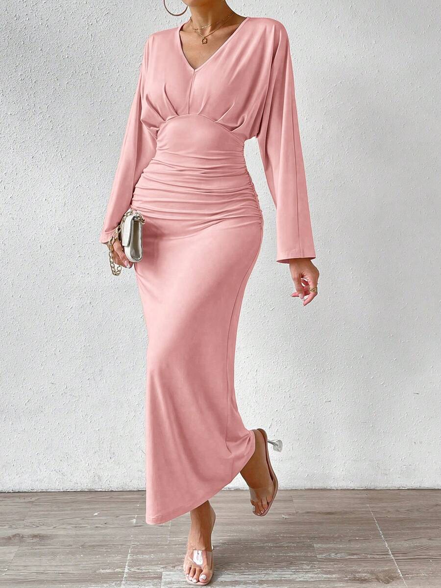SHEIN Privé V-neck Batwing Sleeve Pleated Dress